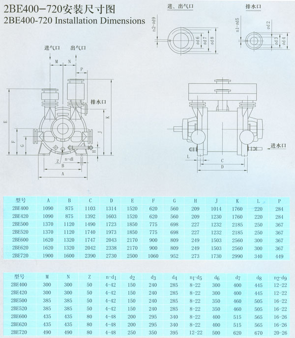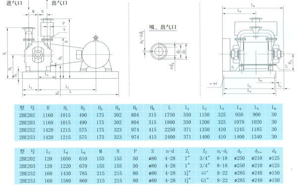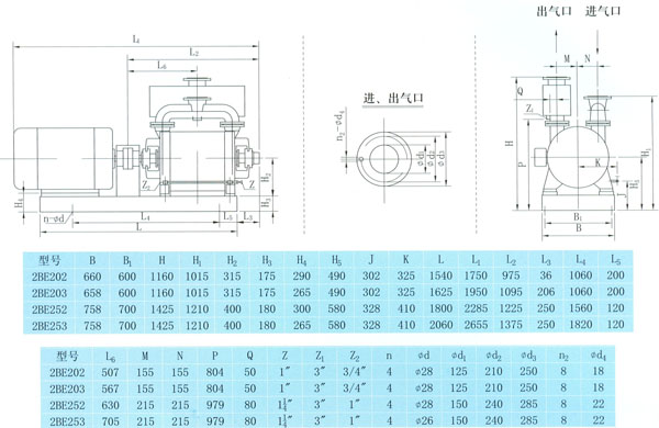 2BE 液環(huán)真空泵性能指標(biāo) 表二