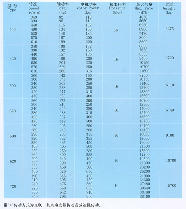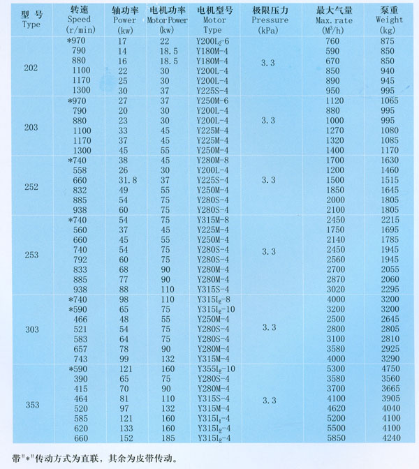 2BE 液環(huán)真空泵性能指標(biāo) 表一